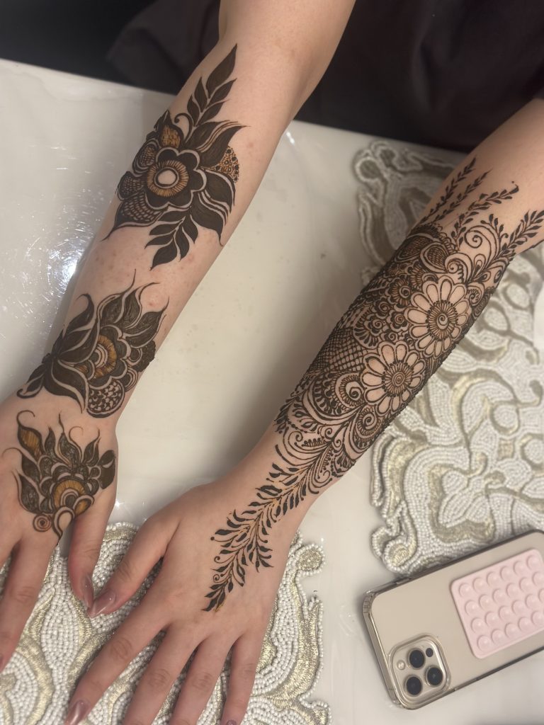Yasmin is an absolute artist! I had the pleasure of getting my henna done for a special event, and the designs were stunning. She truly listens to what you want and brings your vision to life with incredible detail and care. The entire experience was relaxing and enjoyable, and the results were beyond what I imagined. I’ve never received so many compliments on my henna before! Highly recommend Yasmin for anyone looking for beautiful, unique designs!